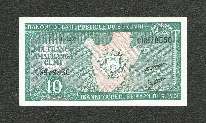10 франков 2007 года. Бурунди. Без обращения