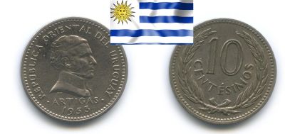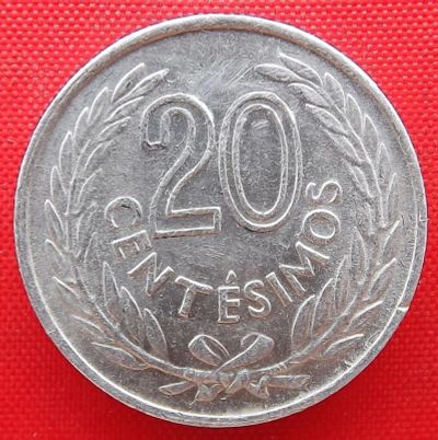 Уругвай 20 сентесимо 1877 г. Серебро.