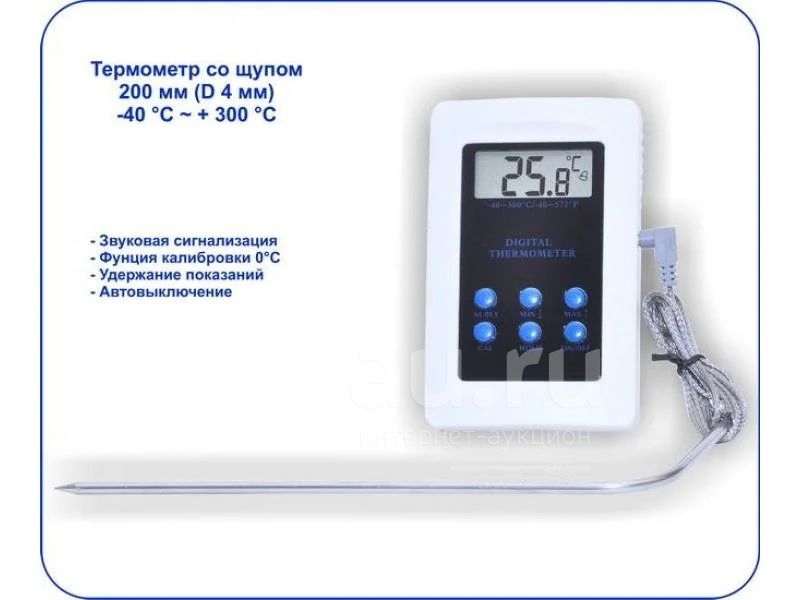 Термометр цифровой электронный высокотемпературный от -40 до 300 с выносным датчиком Код товара: 180381 Доставка