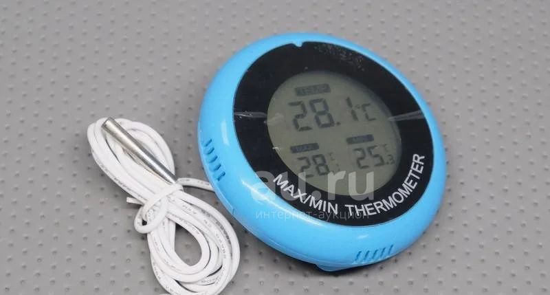 Цифровой электронный термометр для контроля за температурным режимом хранения продуктов в холодильных витринах и морозильных камерах при помощи выносного датчика на проводе. Имеет магнит на обратной стороне, при помощи которого термометр крепится на холодильник или любую другую ровную металлическую поверхность. Также имеет откидную пружинную клипсу. На датчике (внешнем сенсоре) имеется "присоска" для его удобного закрепления в удобном для Вас месте. Длинна провода - 1 метр.
