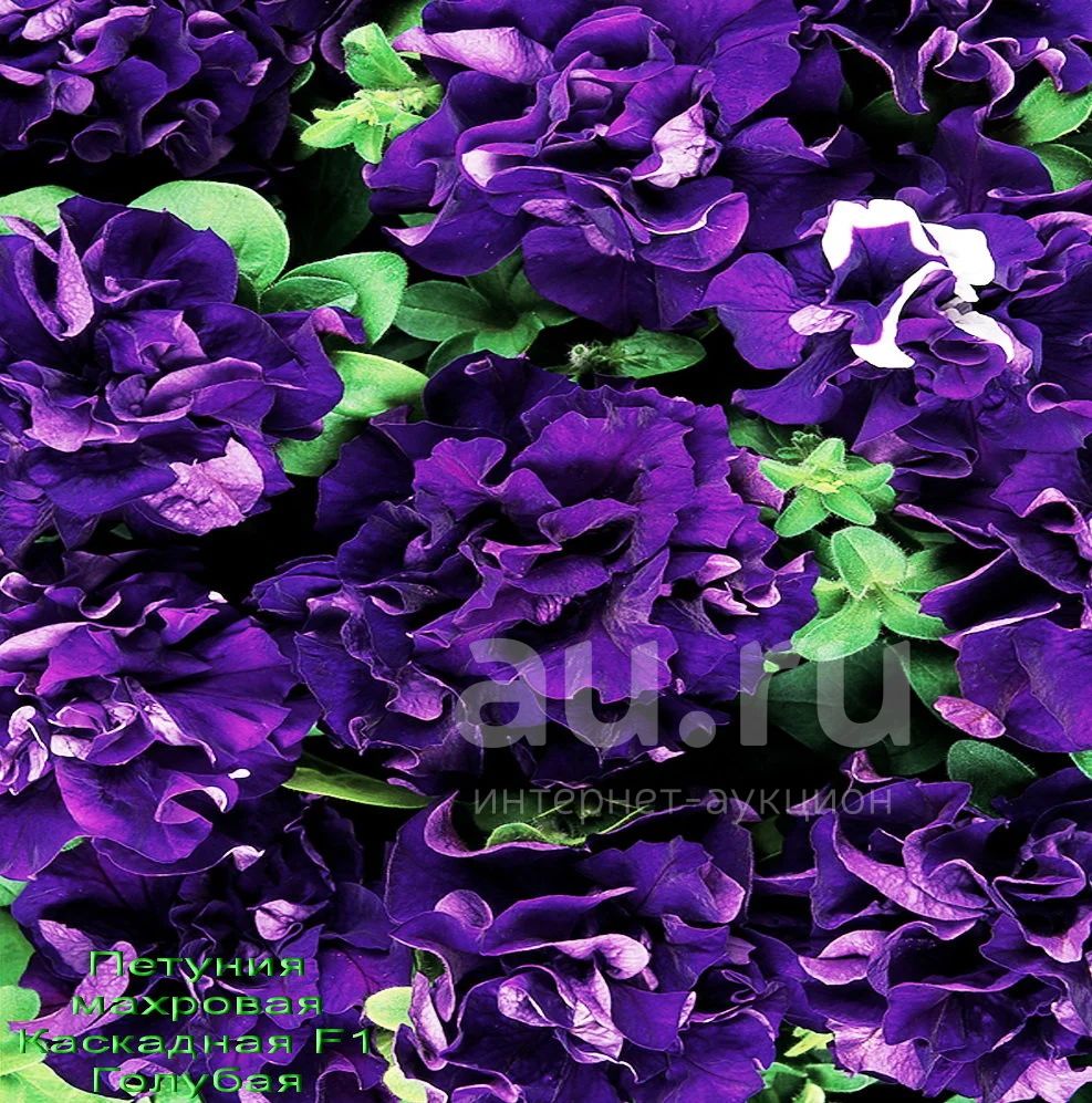 Рассада махровой Каскадной F1 Голубой -75руб. Восхитительная крупноцветковая(13см) с интенсивным ростом, образует ниспадающие побеги (25-40см), покрытые во время цветения шлейфом цветков насыщенной голубойт окраски с темным глазком. Цветение пышное и длительное.