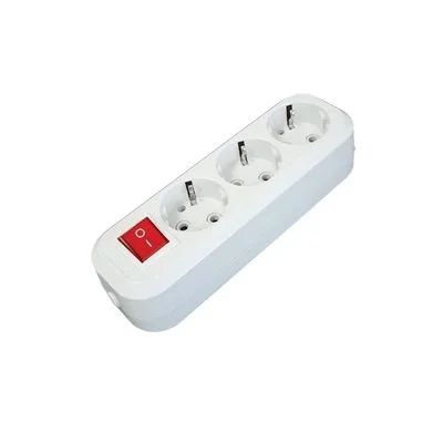 Колодка 3 гнезда с заземляющим контактом, с выключателем