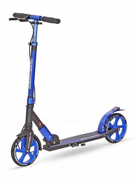 Складной самокат с амортизатором и ручным тормозом. Алюминиевая рама и дека выдерживают вес до 100 кг. Размер деки 58*11 см. Покрытие - шкурка. Регулируемая высота рулевой стойки от 81 до 102 см, 4 положения. Уникальная система складывания - одним нажатием. Диаметр колеса 200 мм, материал полиуретан. Амортизатор переднего колеса смягчает нагрузку при перемещении по неровной дороге. Подшипники ABEC 7 обеспечивают хороший накат. Ручной тормоз. Тормоз задний - наступающий (step-on brake), материал - сталь. Вес самоката 4.5 кг.