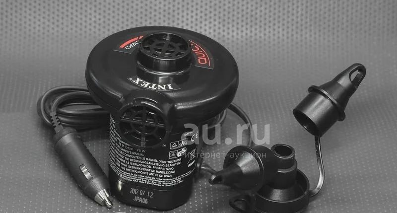 Электрический насос Intex, работающий от автомобильного прикуривателя 12V, рекомендуется для накачивания бассейнов, надувных кроватей и матрасов, батутов, игровых центров, лодок и других изделий.