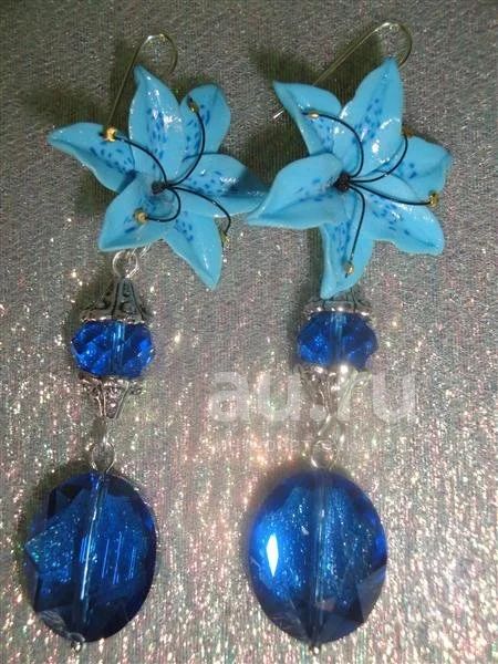 Изделия из полимерной глины,серьги"Сапфировая нежность".Авторская работа.