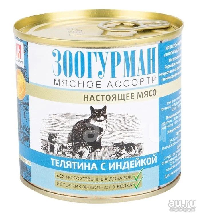 Зоогурман Мясное ассорти влажный корм для кошек Телятина с индейкой, ж/б 250 гр.