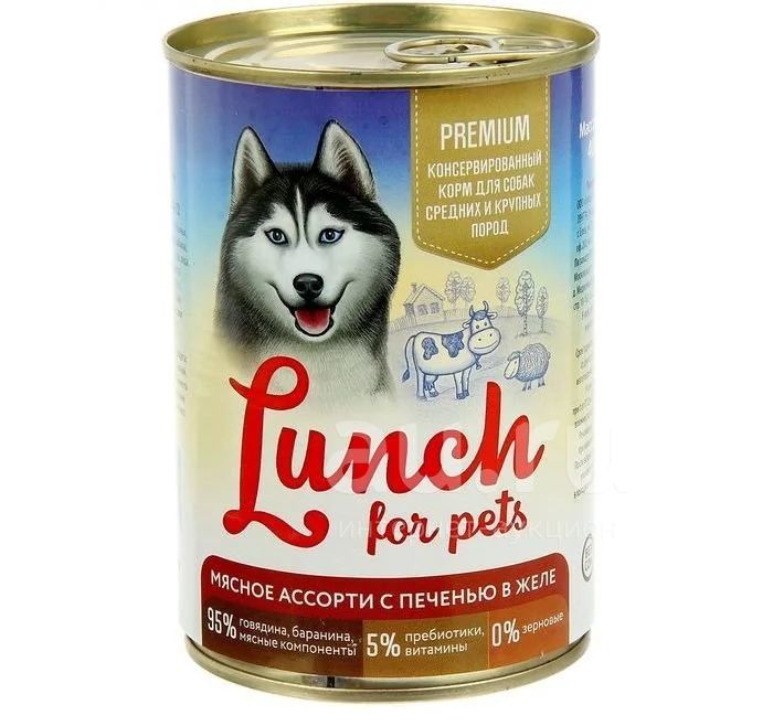Корм консервированный Lunch For Pets (Ланч) для собак 400гр, Мясное ассорти с печенью кусочки желе
