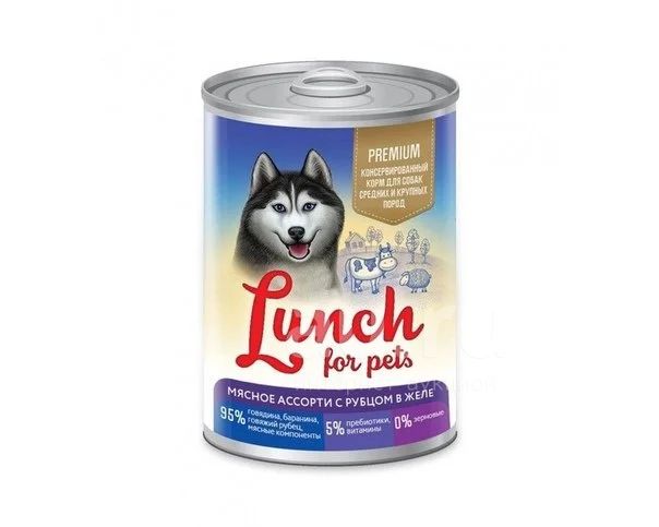 Корм консервированный Lunch For Pets (Ланч) для собак 400гр, Мясное ассорти с рубцом кусочки желе