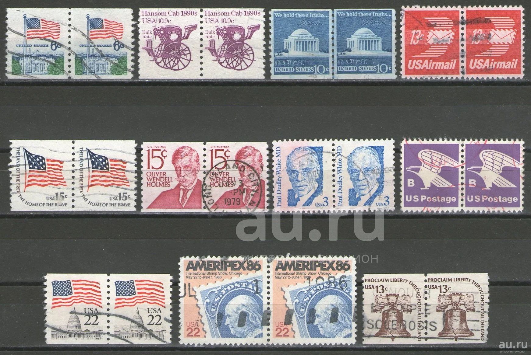 Лот марок США в парах-сцепках