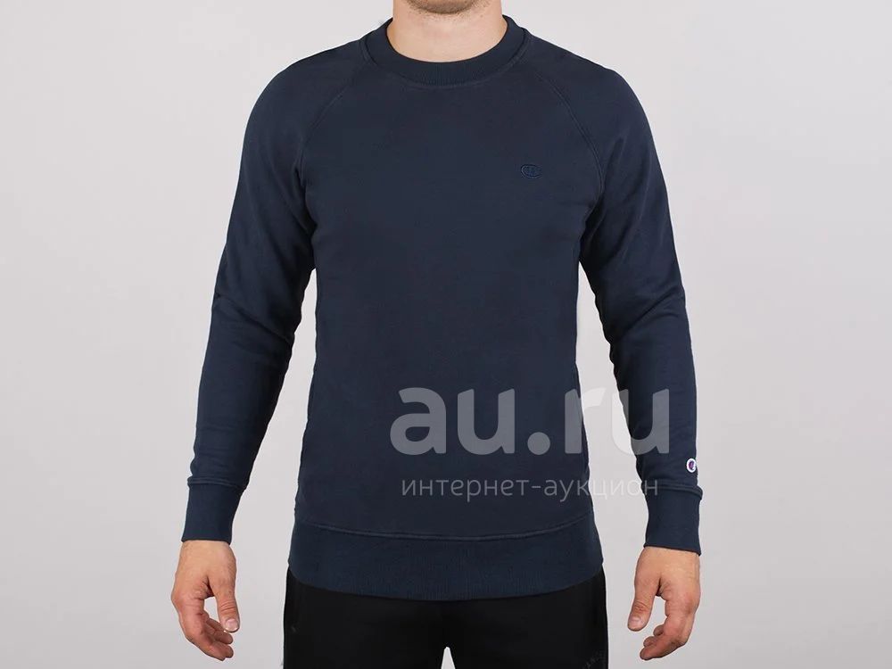 Свитшот Champion синего цвета выполнен из трикотажной ткани. Манжеты и резинка