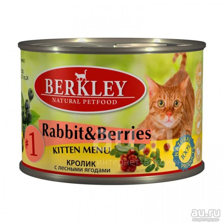 Консервы для кошек Berkley (Беркли) №1 Кролик с лесными ягодами для котят, 200г