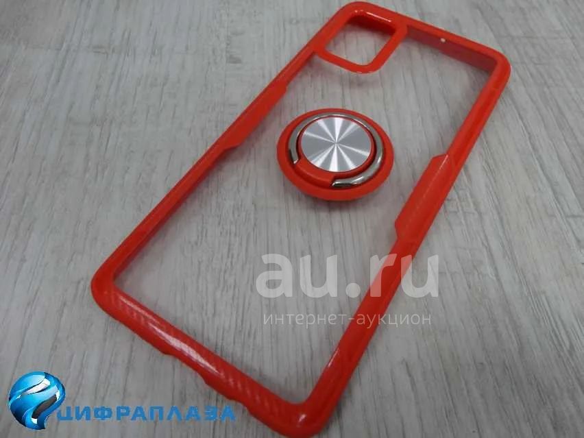 Чехол пластиковый Samsung A51 с кольцом и магнитом контур красный*