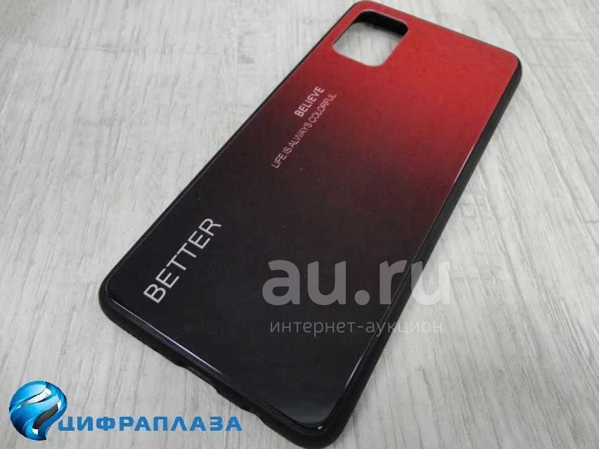 Чехол пластиковый Samsung A51 стеклянная вставка черно-красный*