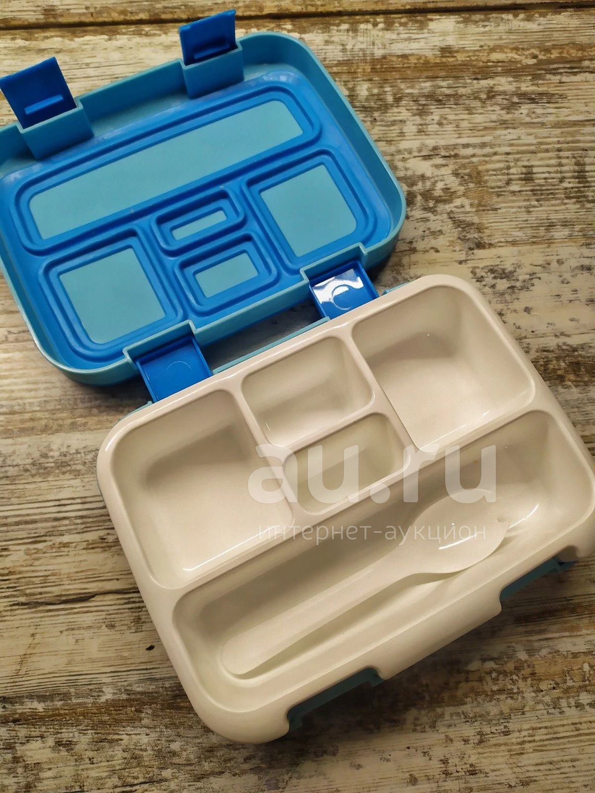 Очень удобный и компактный ланч бокс с отдельными секциями. Крышка прорезиненная, плотно прилегает. В комплекте есть ложка-вилка.