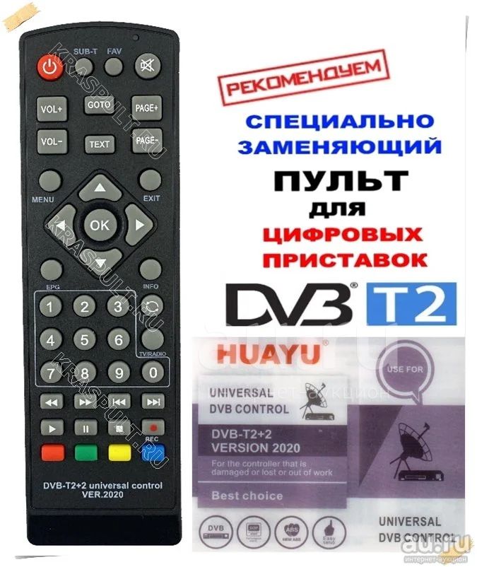 Заменяемый - универсальный пульт HUAYU подходит практически к любой приставки - ресиверу DVB-T2.