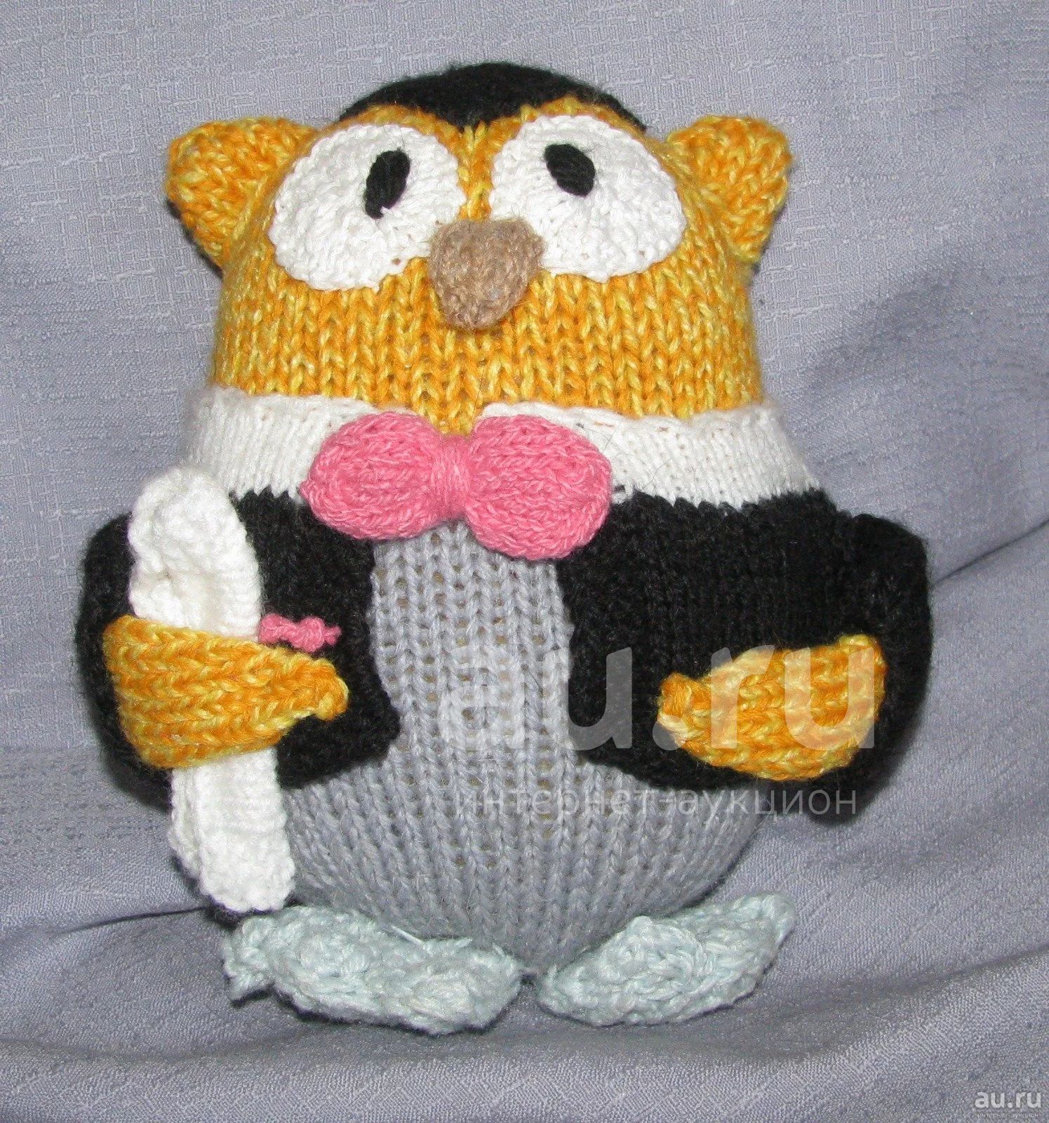 игрушка вязаная сова 22 см в пиджаке с бантиком отличный вариант подарка