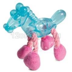Эта оригинальная игрушка из термопластичной резины станет верным напарником для игры вашему четвероногому питомцу. Прочный прозрачный корпус игрушки украшен мелкими блестками, а в веревочные ноги лошадки интегрированы мягкие подушечки, которые удобно грызть даже маленькому щенку. Нежная цветовая гамма наделяет изделие особым шармом, а комбинация различных материалов позволяет максимально разнообразить досуг вашего питомца