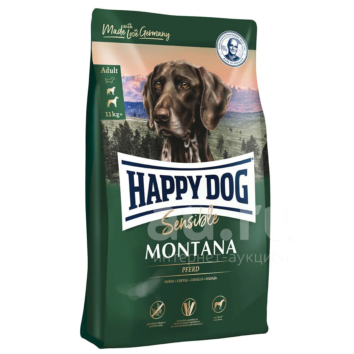 Полнорационный корм супер-премиум класса Happy Dog Montana основан на изысканном и эксклюзивном сочетании конины и картофеля. Он идеально подходит гурманам и привередам. Благодаря редкому источнику белка Montana также идеально подходит собакам с кормовой непереносимостью корма и рекомендуется ветеринарами в качестве элиминационной диеты.