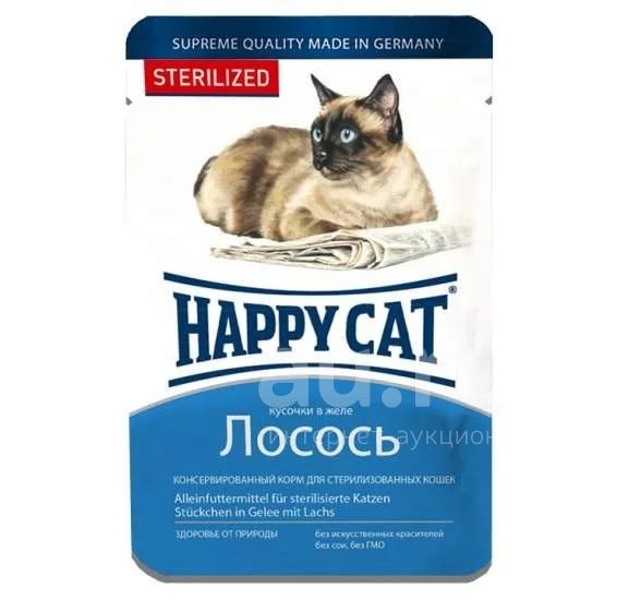 (Хэппи Кэт) Лосось 100г пауч корм для кошек кусочки в желе СТЕРИЛИЗАТ