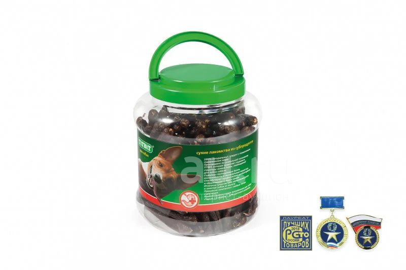 Высушенные порезанные на отрезки 3-4 см говяжьи кишки. Легкоусвояемое лакомство, богатое витаминами и ферментами микрофлоры кишечника крупного рогатого скота. Имеют большую энергетическую ценность из-за повышенного содержания жира. Богаты переваримыми протеинами, которые содержат все незаменимые аминокислоты и потому усваиваются на 90-95%.