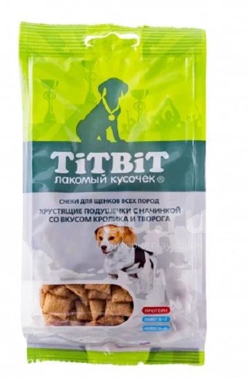 Хрустящие подушечки (ТитБит) Кролик/Творог 95г лакомство для щенков