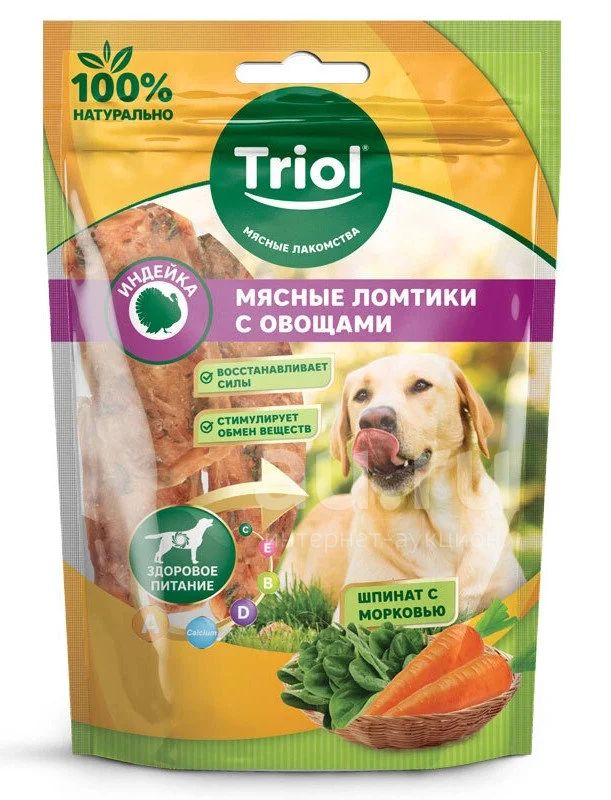 ТРИОЛ для собак Ломтики из индейки с морковью и шпинатом70г