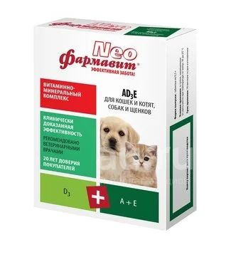 Витамины Фармавит Neo АD3E для кошек и котят, собак и щенков 90таб
