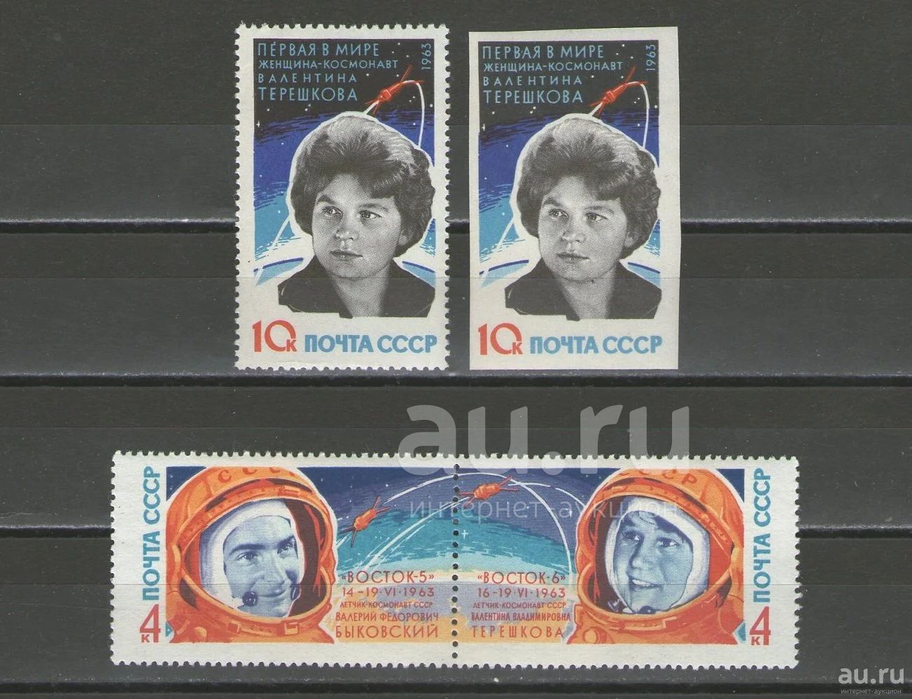 1963 год. 2-й выпуск. Полная серия (зубцовая + беззубцовая). Групповой полет В.Ф.Быковского и В.В.Терешковой. Разновидности (см.фото) Идеальное состояние!