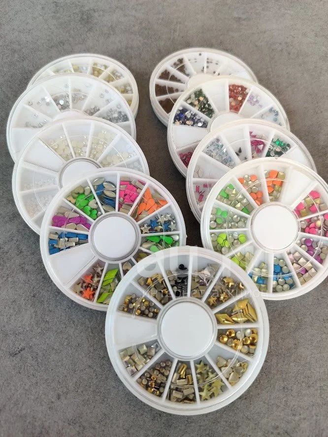 Большой набор страз, заклепок и жемчужин для дизайна ногтей