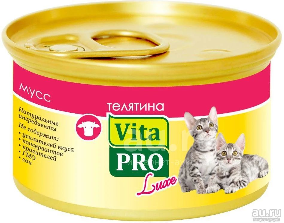 Консервы VITA PRO LUXE - это высококачественный корм для котят до 1 года, в виде сочного, нежного мусса из телятины.
