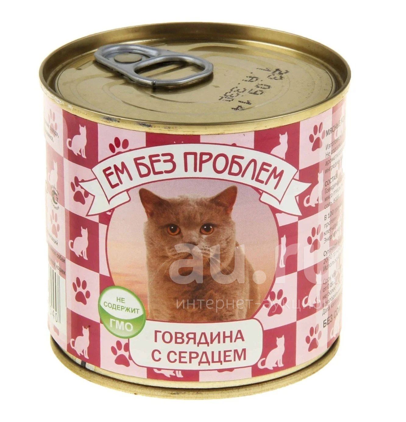 Корм Ем без проблем консервы для кошек Говядина/Сердце 250гр ж/б