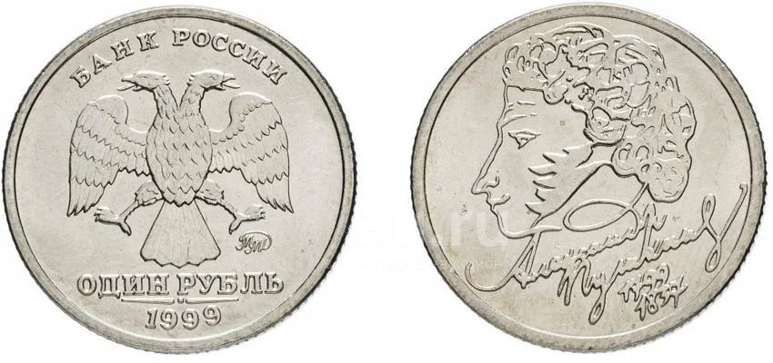 1 рубль 1999 года. Пушкин, ММД.