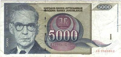 Югославия. 5000 динар 1992г. (3)