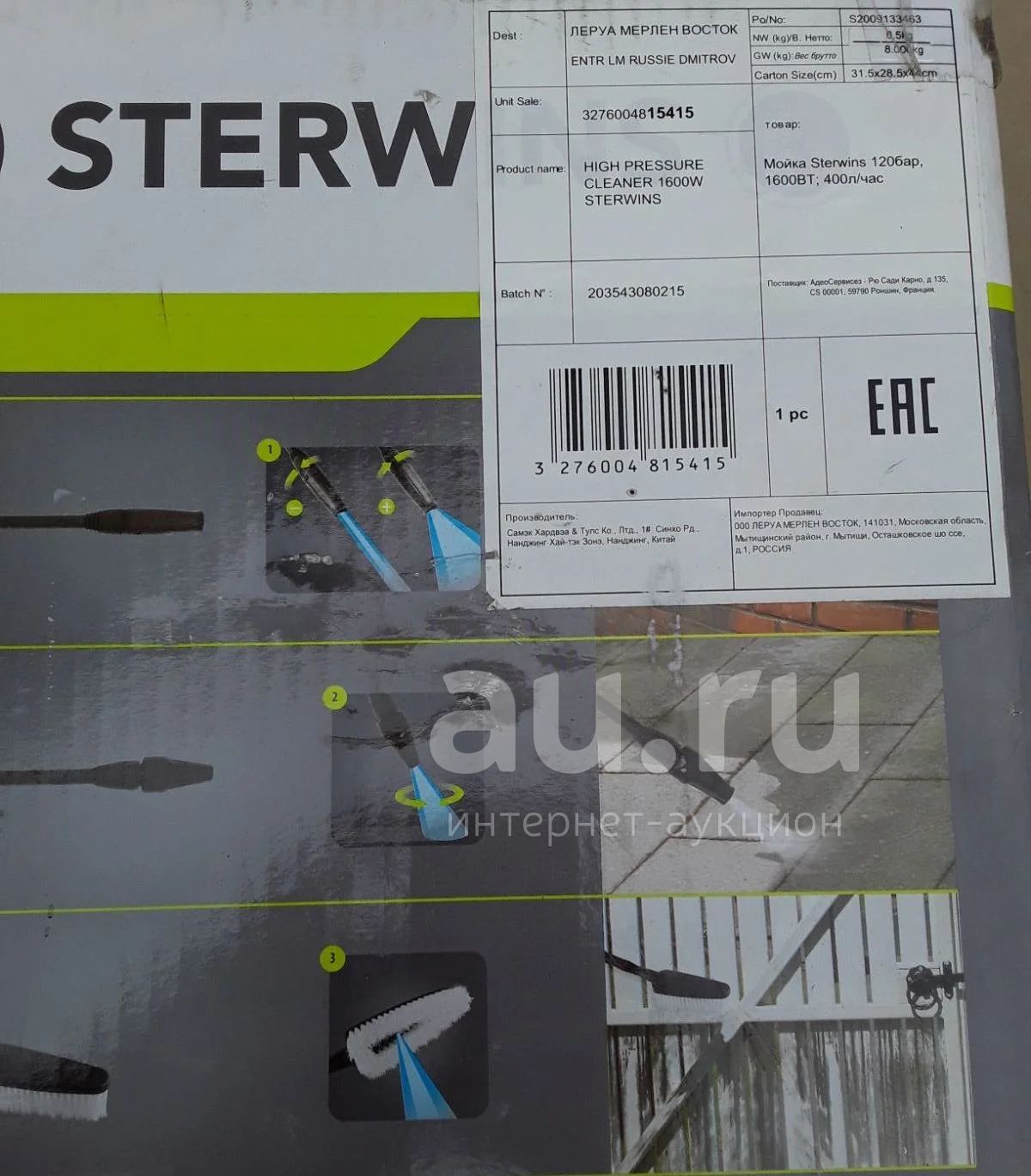 Мойка высокого давления Sterwins 120 бар/1600 Вт/400 л/час; б/у, неисправен насос: электродвигатель исправен, клапан отключения по давлению срабатывает, но накачивает долго. Без шлангов/насадок