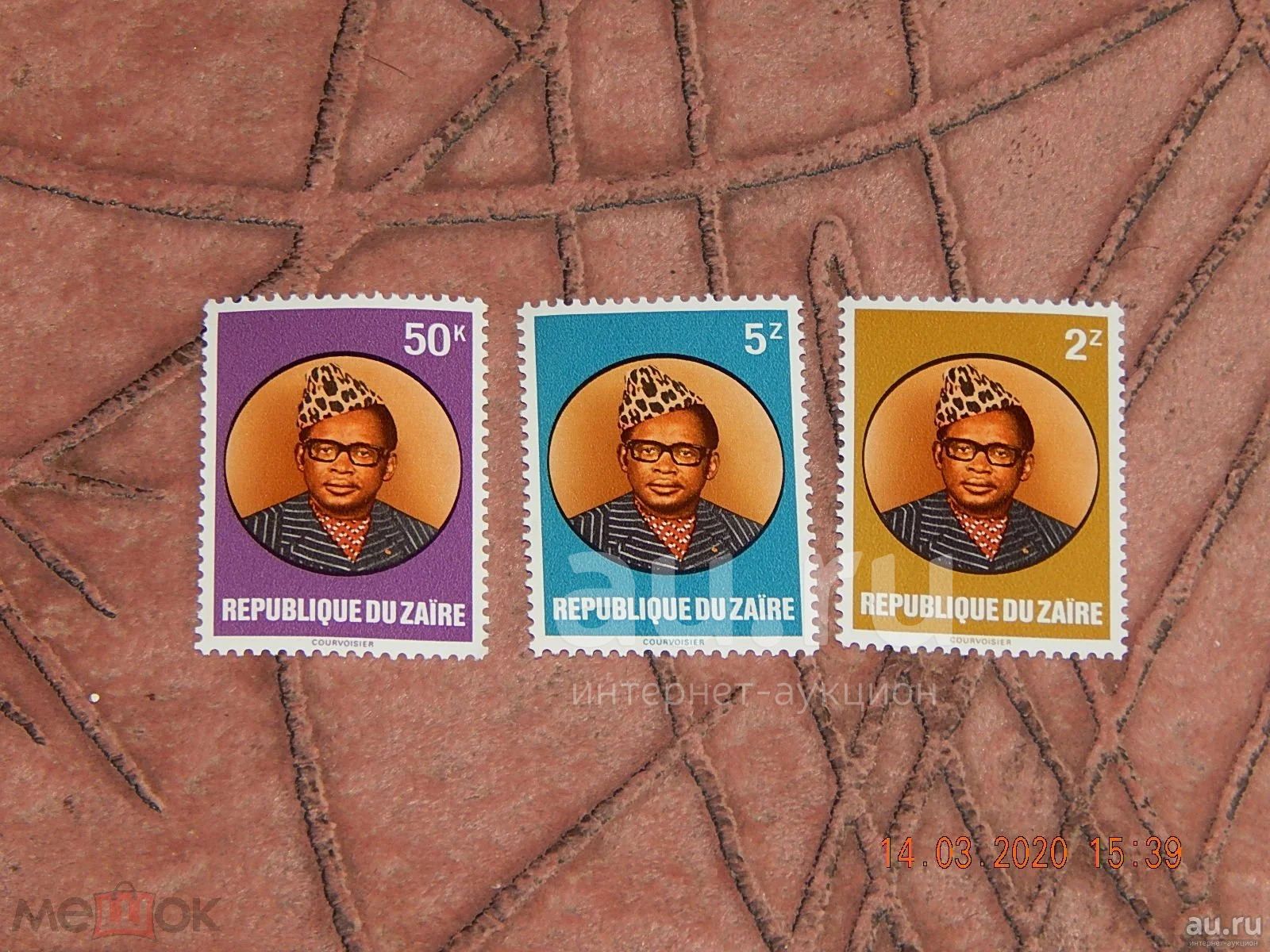 Чистые марки Заира 1978 г. "Президент Мобуту Сесе Секо" в идеальном состоянии.