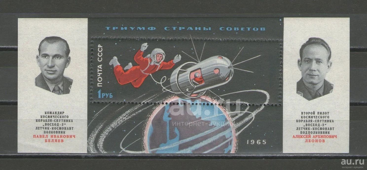 1965 год. Почтовый блок. Первый в мире выход человека в открытый космос. Рекомендую в коллекцию!