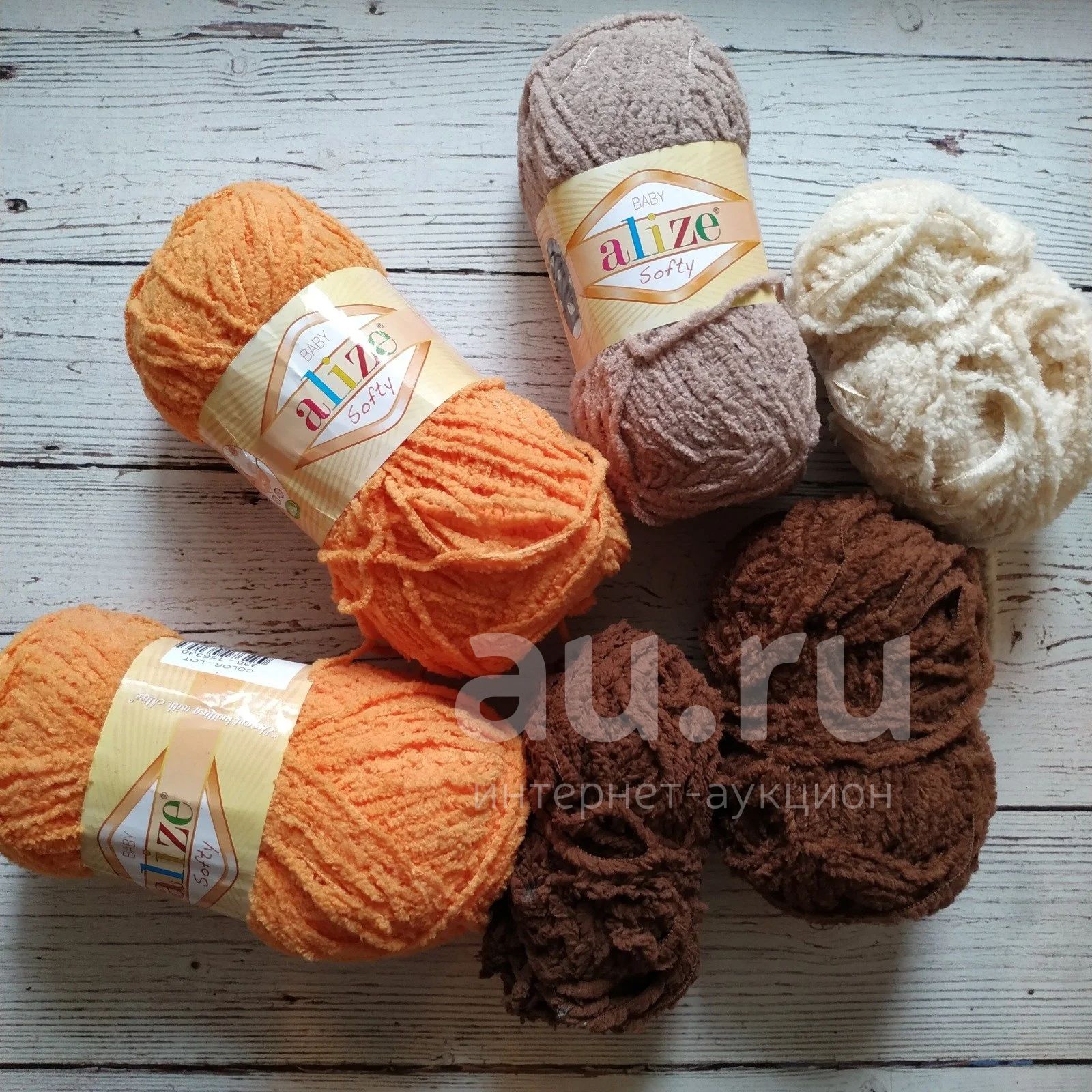 Alize softy: 2 оранжевых, 1 светло коричневый - новые