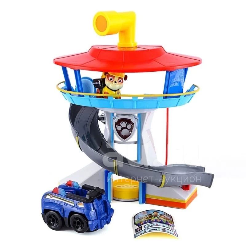 Высота конструкции в собранном виде 46см. В наборе: база Райдера и спасателей (точная копия башни - штаба из мультфильма Щенячий Патруль) с подъемным лифтом, горкой, работающим перископом + 1 герой (попадаются вразнобой) + машинка со звуковыми и световыми эффектами, которая может объезжать препятствия. База Райдера имеет музыкальное сопровождение, при нажатии на кнопку-лапку вы услышите знакомую мелодию из мультфильма Щенячий патруль. Цена: 2290р. В наличии.