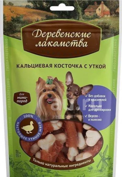 Деревенские лакомства для СОБАК МИНИ ПОРОД Кальцевая косточка с уткой 55гр