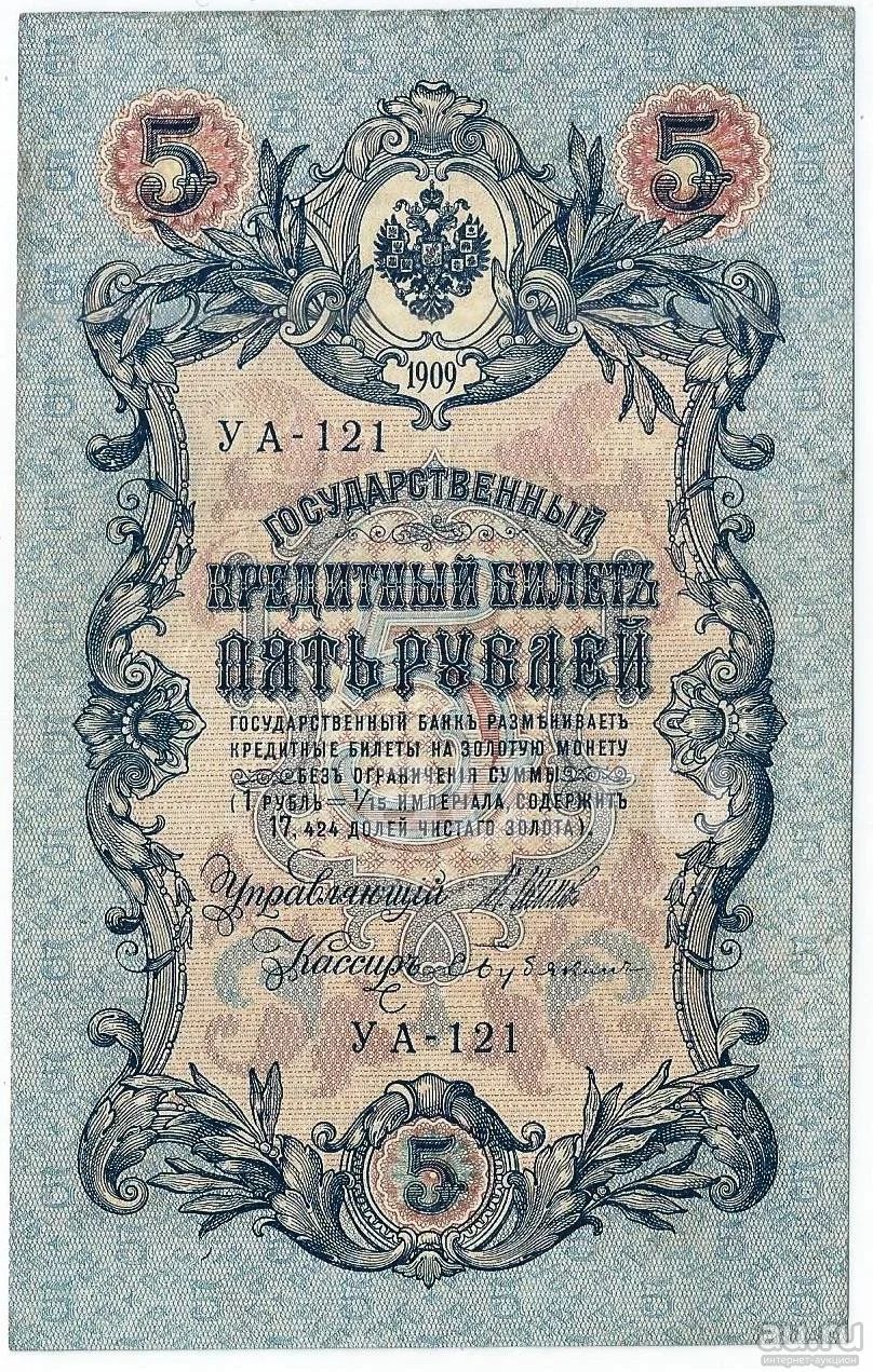 5 рублей 1909 год. Шипов - С. Бубякин.