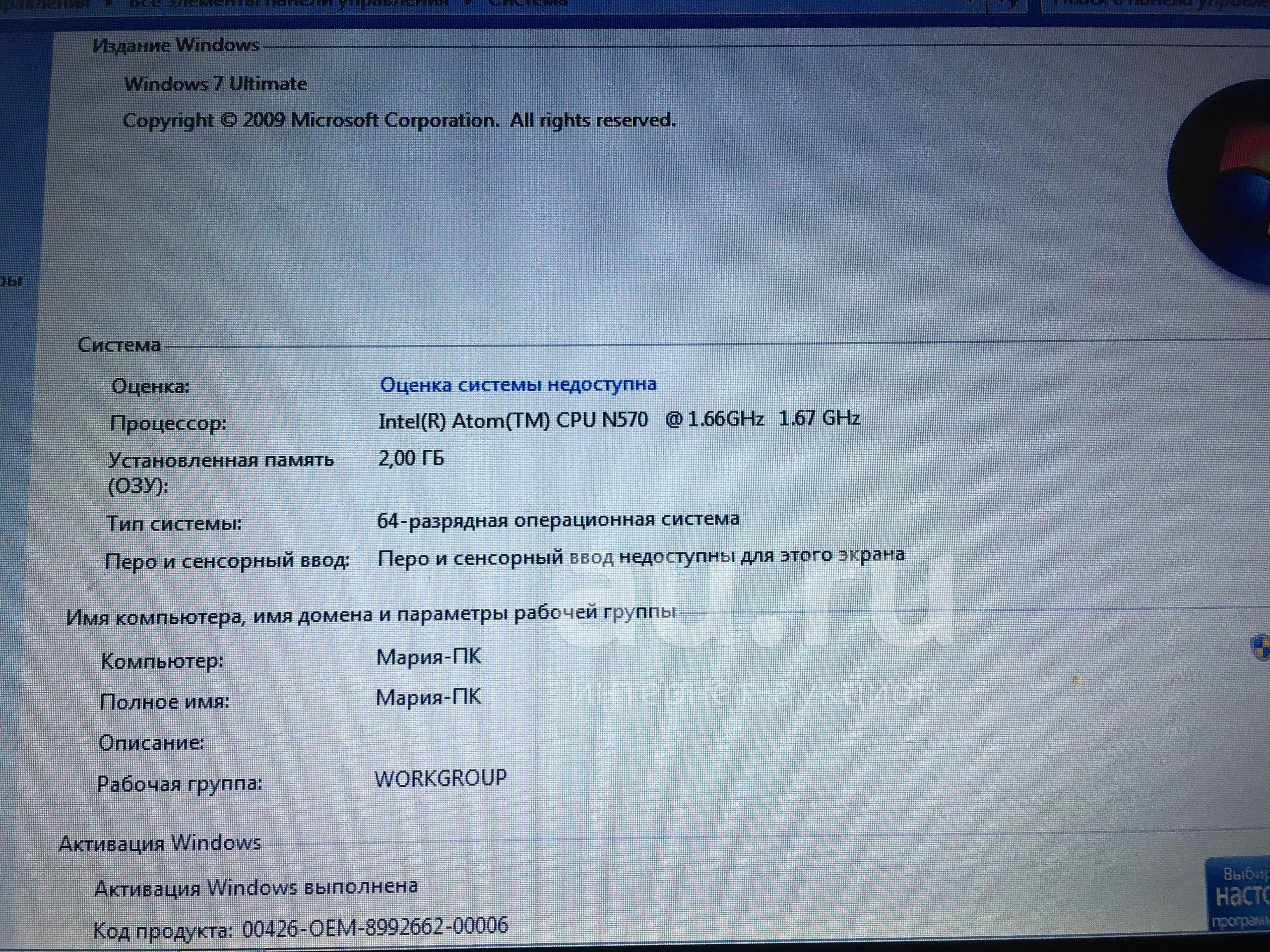 Рабочий но старенький нетбук, заряд держит мало, буквально час, диагональ указана наугад