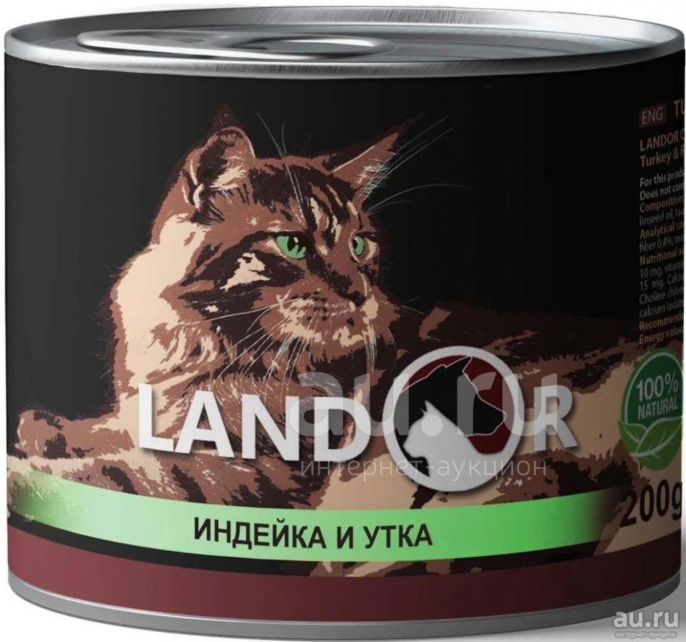 LANDOR Полноценный сбалансированный влажный корм для котят индейка с уткой произведен из свежего мяса и отборных ингредиентов. В рецепте до 70% натурального мяса, все необходимые питательные вещества, аминокислоты и витамины. Не содержит сои, искусственных красителей, ароматизаторов и консервантов.