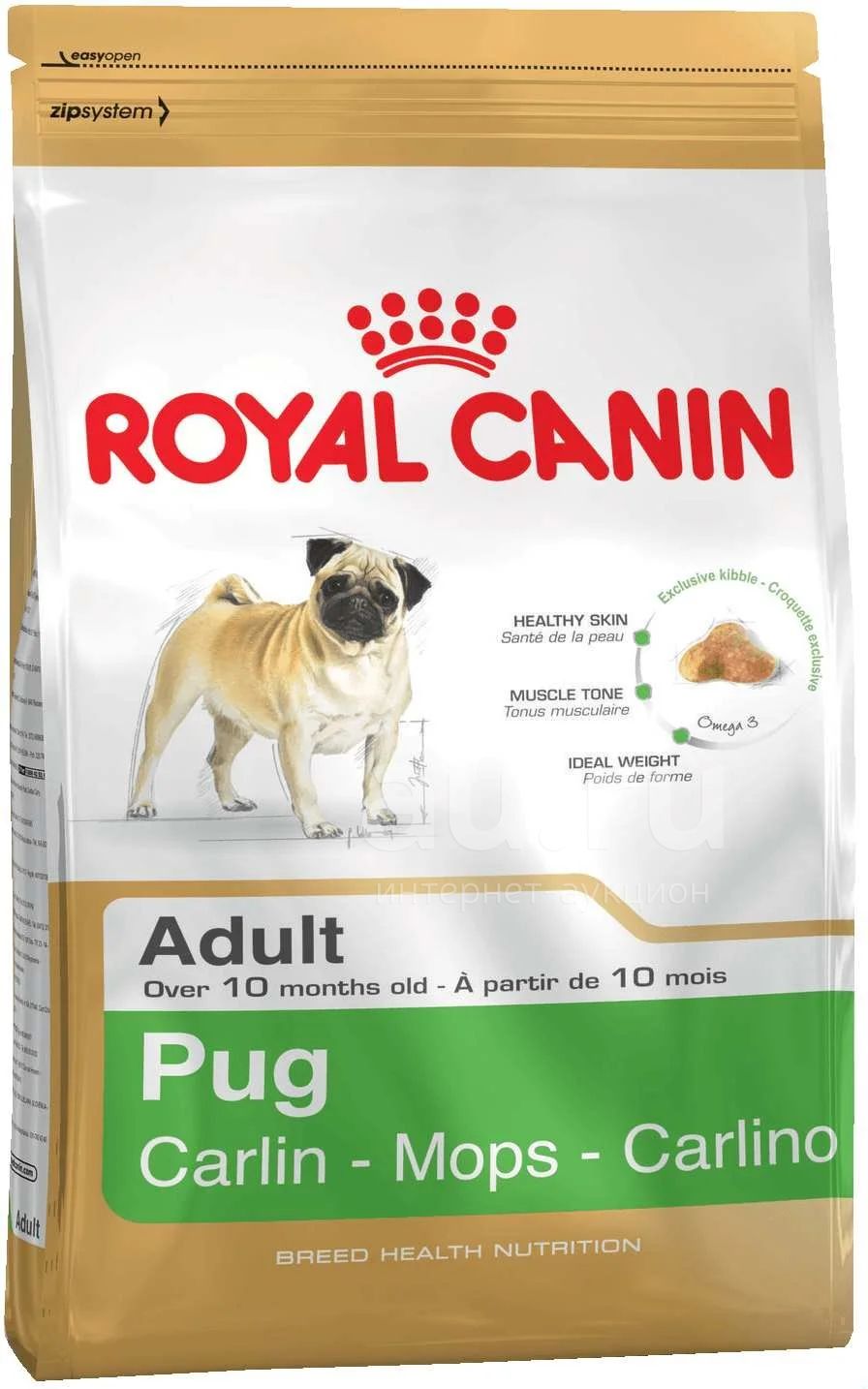 (Роял Канин) 7,5кг сухой корм для собак Mops Adult