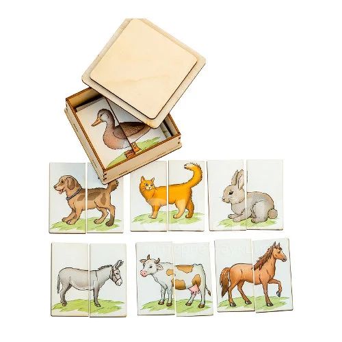 Яркие картинки с прочным нанесением краски - в этом главное отличие от картинок-половинок Домашние животные. Также отличие по количеству - в новом наборе 10 картинок, а не 8.