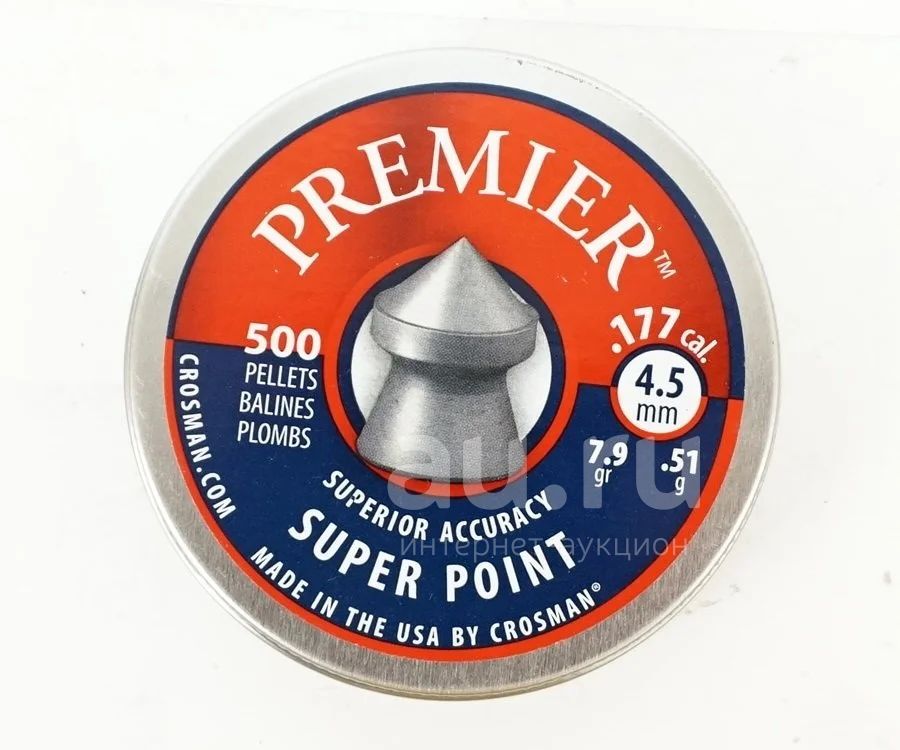 Пули (пуля, пульки) "Crosman Premier Super Point", 4,5 мм., 7,9 гран (500 шт.) 4,5 мм, 0,51 гр,