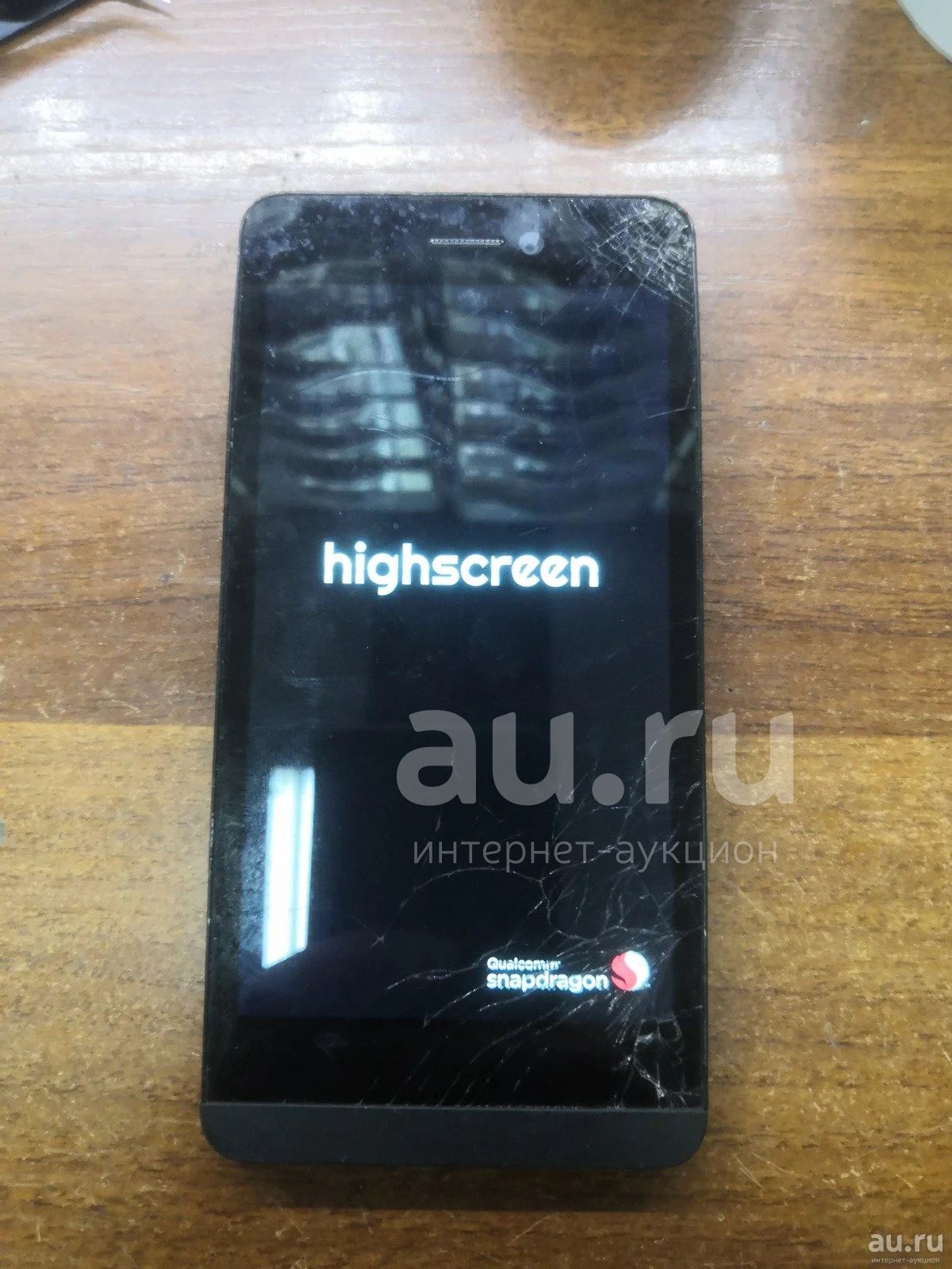 Highscreen Spider висит на заставке, трещины на стекле