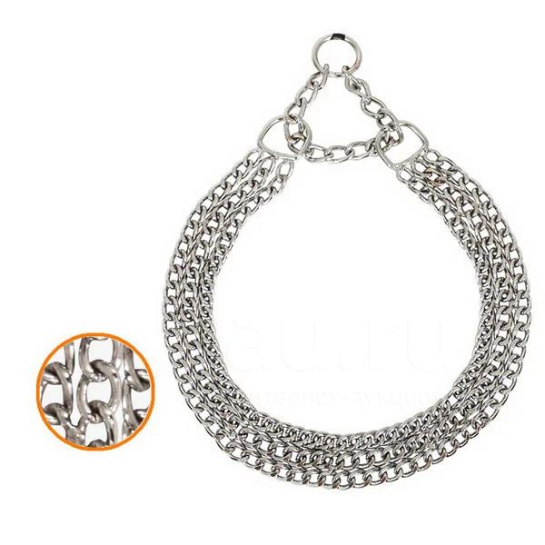 Функциональный трехрядный ошейник-удавка из металла - это незаменимый аксессуар для выгула и дрессировки бойцовских собак и питомцев крупных пород.