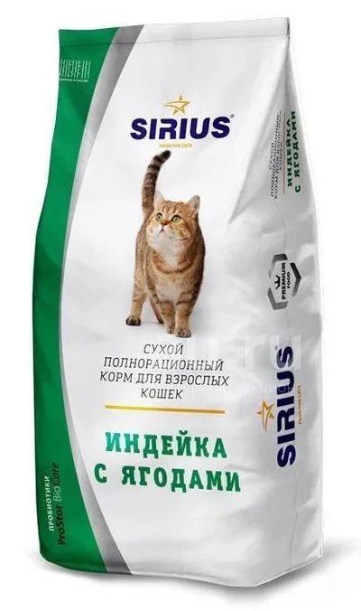 Сириус (Sirius) сухой корм для кошек и котов Индейка с ягодами, 1,5кг