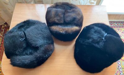 Шапка ушанка из нат.замши и норки. р.58. Имеется утяжка. Состояние хорошее. В уголках ушек внизу маленько вышаркалось. На фото выделила.