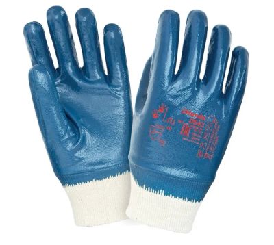 Перчатки покрытые голубым нитрилом,манжета-крага 851